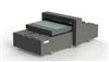 La base de l'unité linéaire est constituée par une platine solide en pierre dure à grain fin, rodée avec la plus haute précision. Deux rainures sont fraisées dans la surface de cette platine. La première rainure sert de guidage latéral pour l'unité de déplacement ultrastable, guidée par coussinet pneumatique à dépression. Ce concept permet d'atteindre un mouvement rectiligne incomparable présentant un lacet minime. Un moteur linéaire sans fer servant d'entraînement est intégré dans la deuxième rainure. Grâce à un amortissement pneumatique actif, le système complet est isolé contre les vibrations et autres influences extérieures.