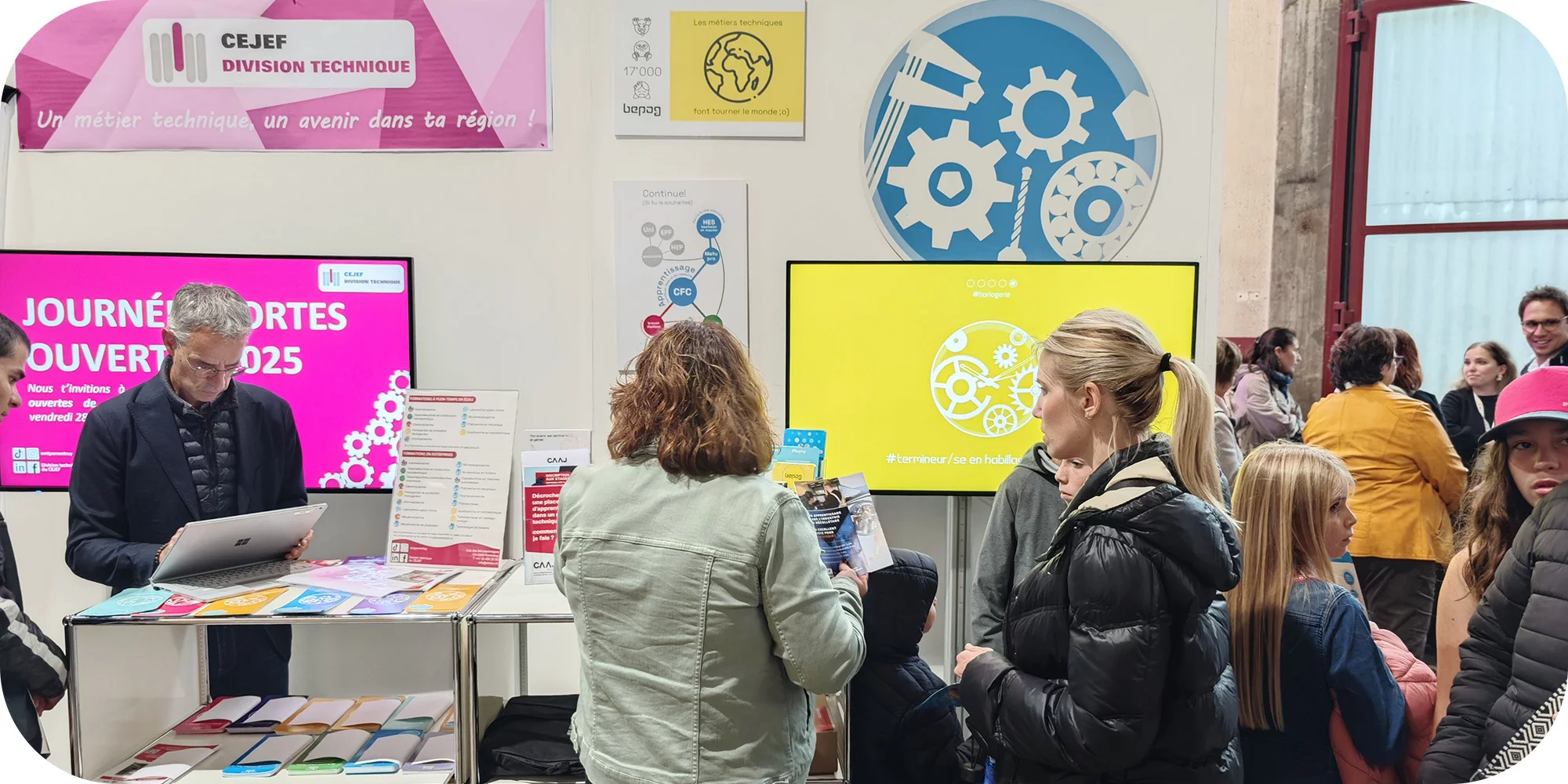 bepog, l'AFDT et la division technique du CEJEF y partagent un espace de mise en valeur des métiers techniques et y démontrent de belles synergies. Merci à Claude Maître (DivTec) et à Joëlle Schneiter (AFDT) pour l'excellente collaboration.