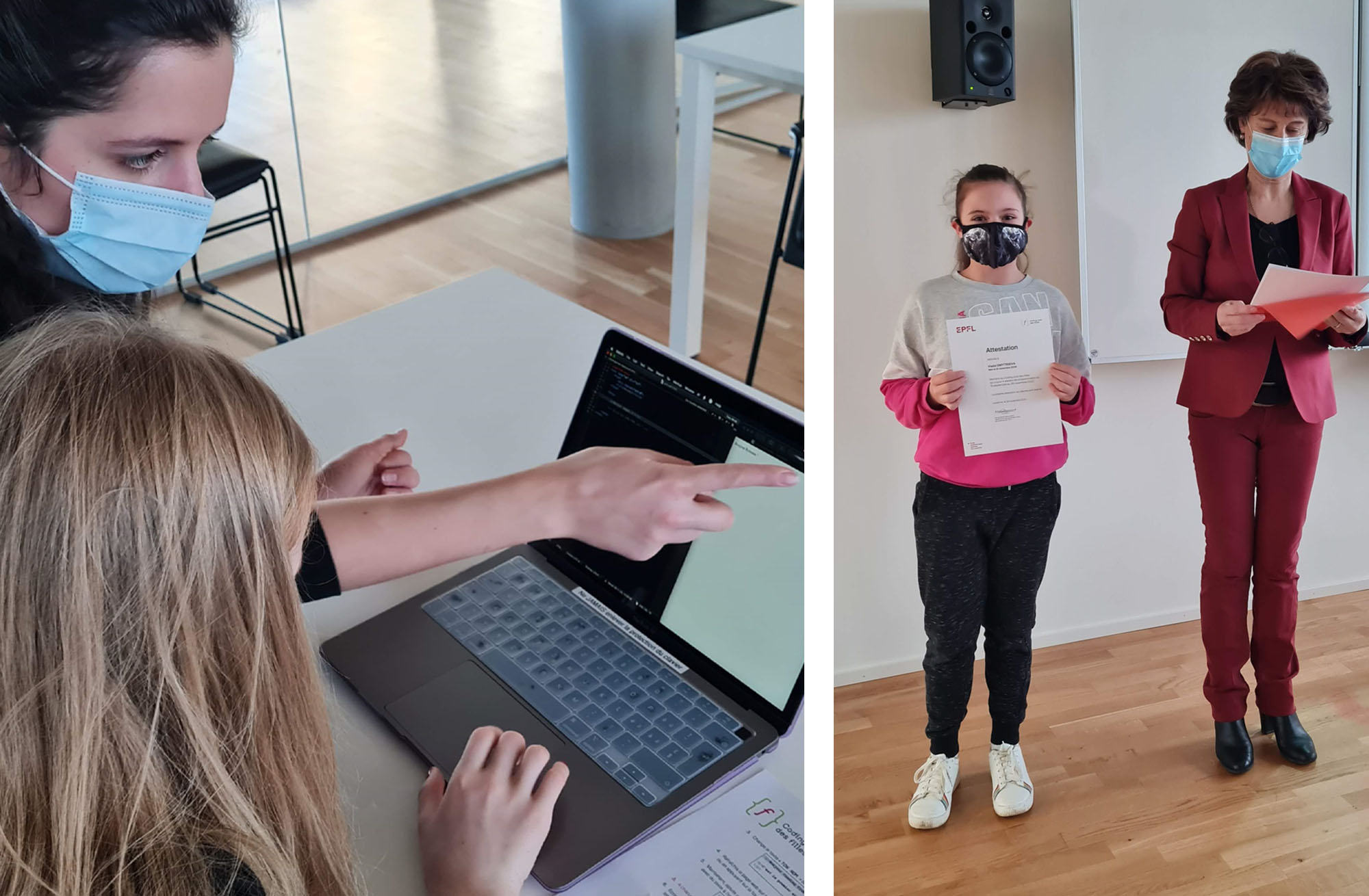 Les ateliers durent 2h30 et sont encadrés par des étudiantes et étudiants de l’EPFL. Des intervenantes, spécialisées dans les domaines des technologies de l’information et de la communication, sont ponctuellement invitées afin de présenter leur parcours.