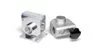 A gauche, une pièce dans un serrage sur notre centre 5 axes, fraisée en un seul serrage.