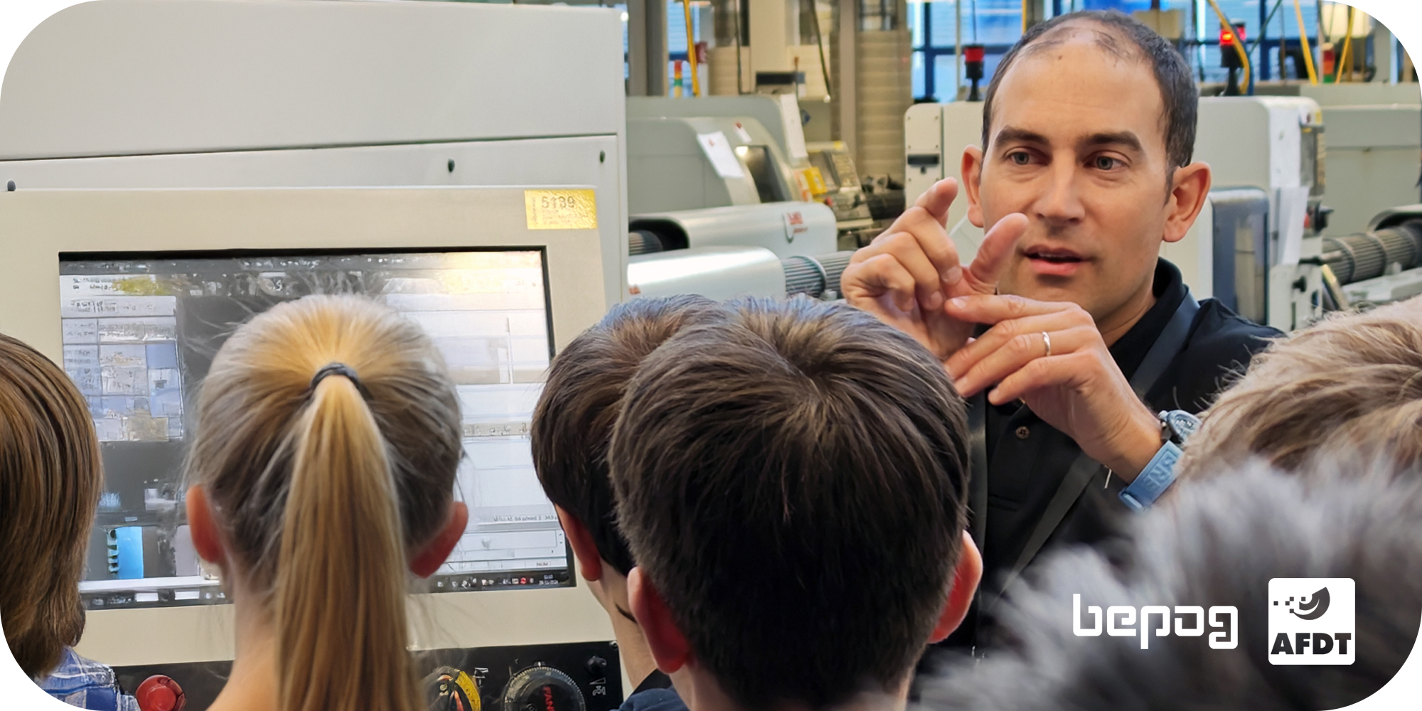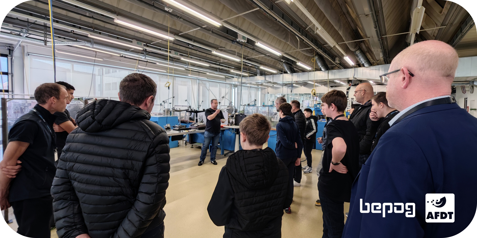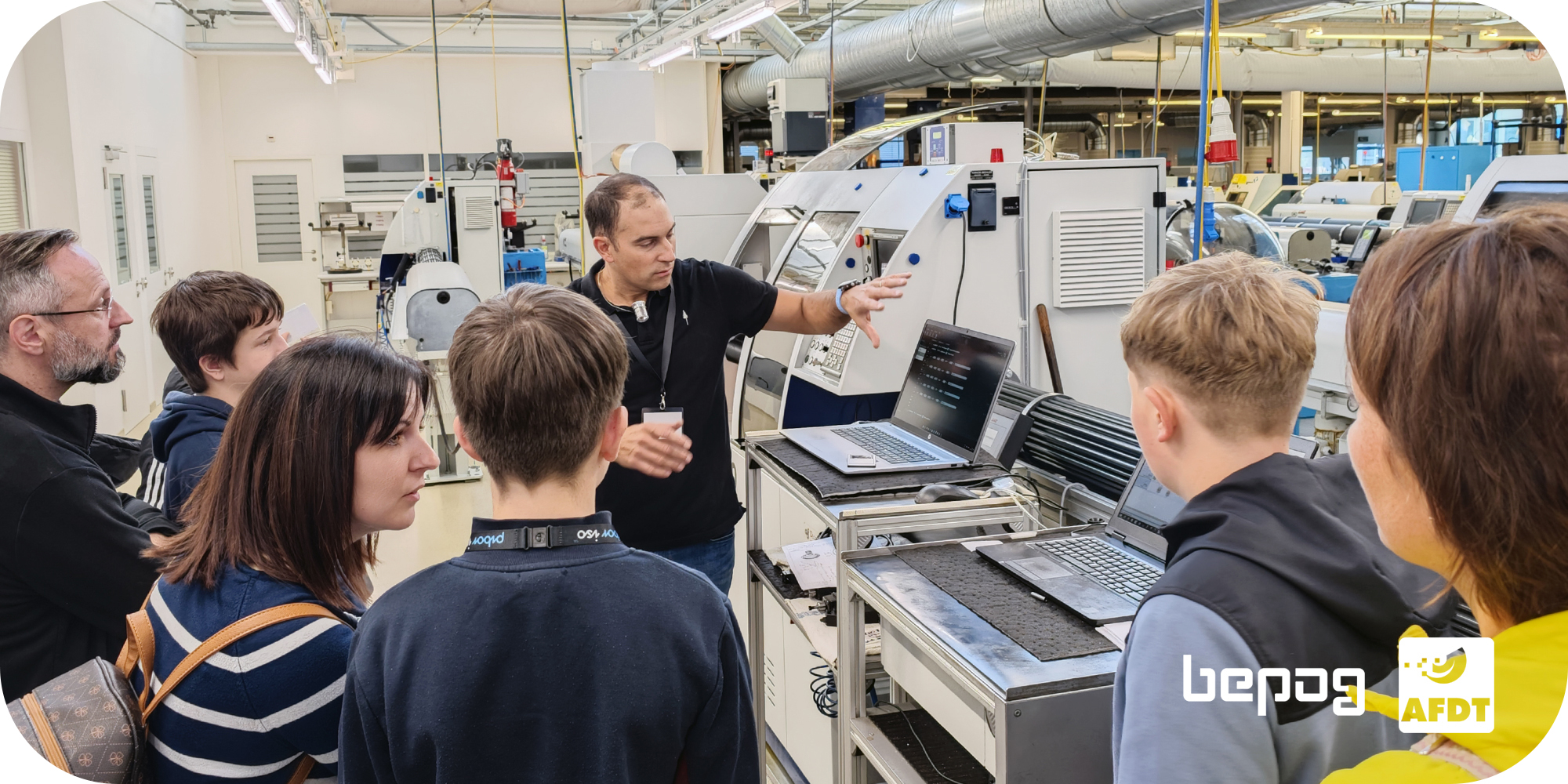 La matinée du 9 novembre 2024, quatrième du genre organisée par l'AFDT, bepog et une entreprise membre de l'Association des Fabricants de Décolletages et de Taillages, vise à permettre aux jeunes et à leurs parents d'en découvrir plus sur les métiers techniques et les conditions de travail dans une entreprise moderne d'aujourd'hui. Et le moins que l'on puisse dire est que les visiteurs sont impressionnés par les locaux et les machines bien loin de l'image vieillotte souvent associée à la mécanique. On découvre que les métiers du décolletage et de la mécanique sont des métiers d'avenir!