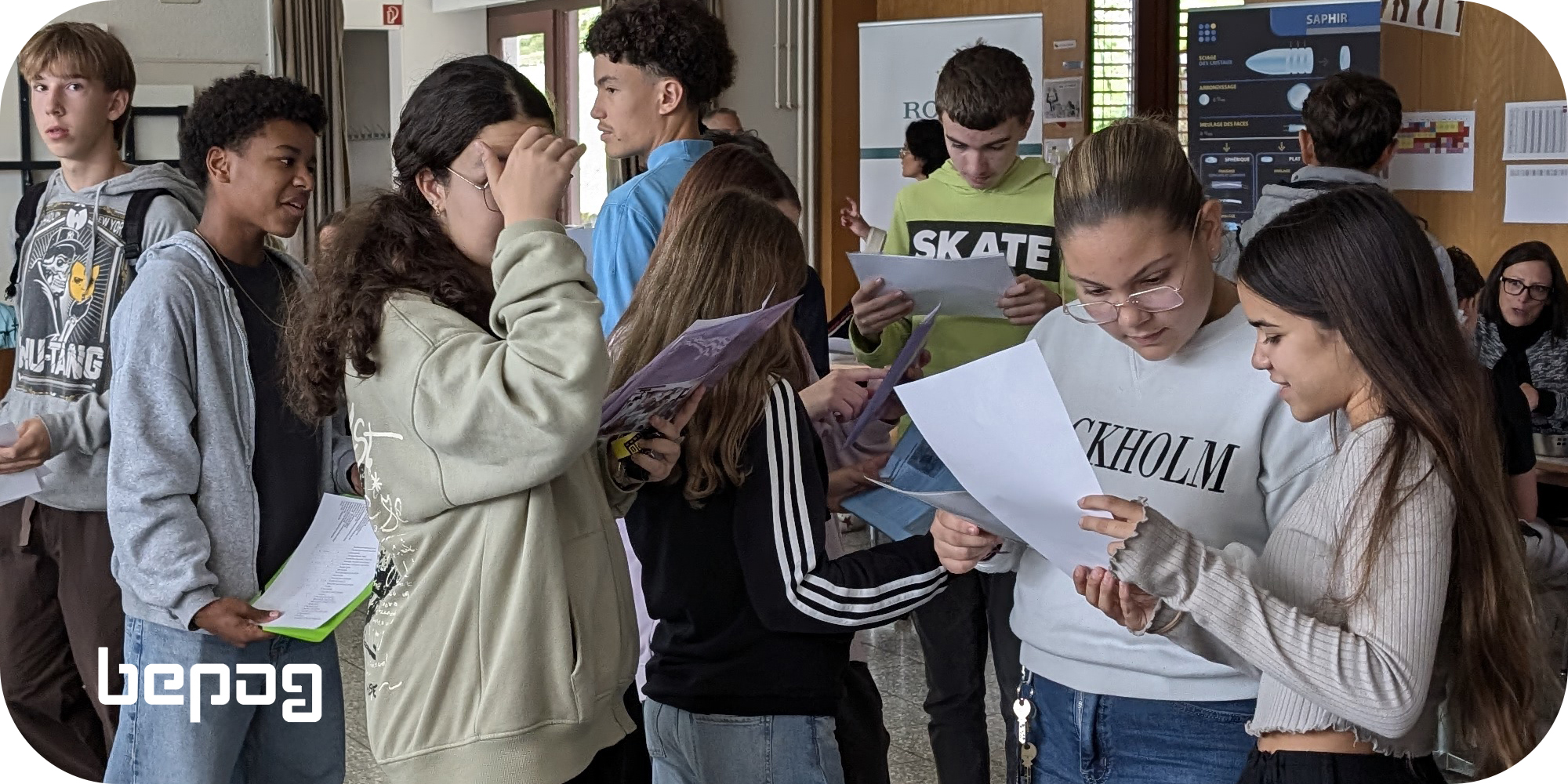 Du côté des écoles secondaires, un travail de fond a été effectué tout au long de la 10e et 11e année. La direction de l’école, le conseiller en orientation professionnelle attitré ainsi que huit enseignants étaient présents pour accompagner les jeunes à l’évènement. Ils ont participé activement en orientant les élèves vers le métier et les entreprises qui correspondaient à leur(s) choix. L’organisation de cet évènement est véritablement l’affaire de tous : à la récréation de 10 heures, une classe a été mobilisée pour installer les tables dans le hall puis à 11h50, ce sont d’autres élèves qui ont apporté les chaises.