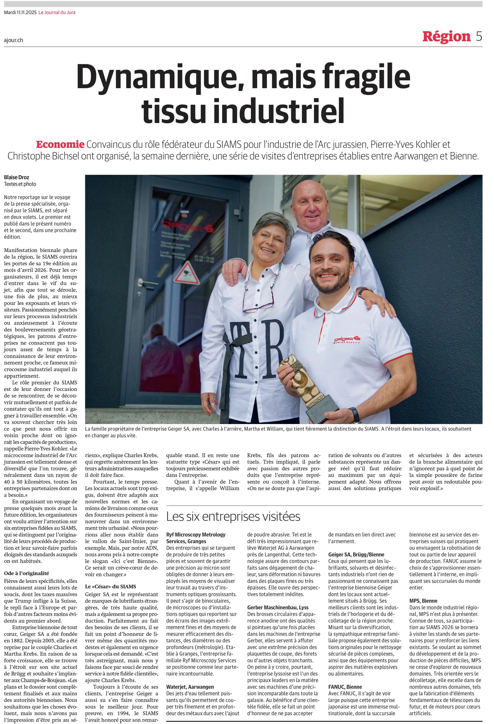 Le Journal du Jura revient sur le voyage de presse 2025 de SIAMS. Merci 🌞