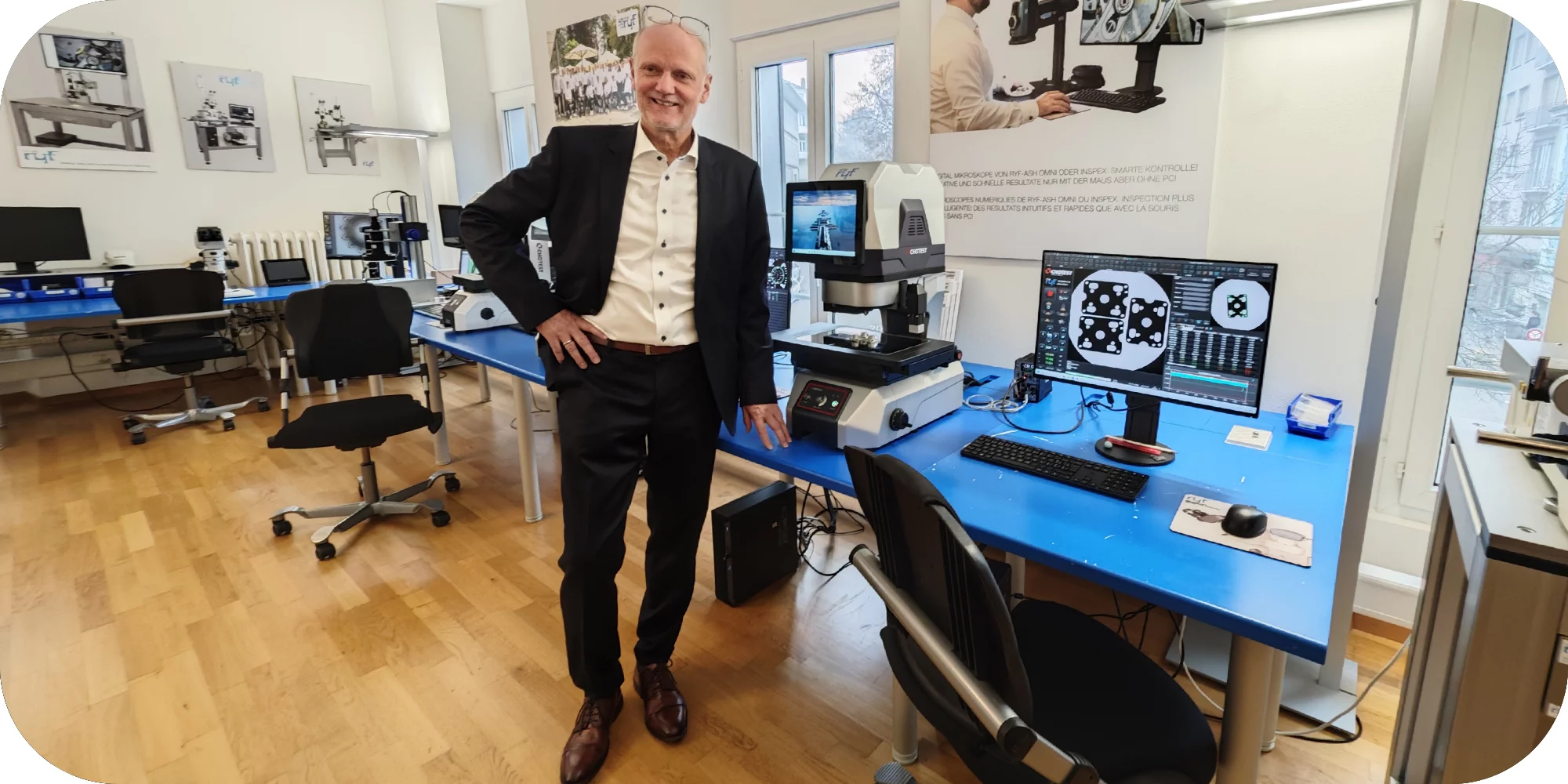 Nous sommes accueillis au centre-ville dans une bâtisse datant de 1680 par MM. Pierre-Alain Pittet, conseiller client et Daniel Ryf, propriétaire et CEO. Avant de parler des solutions, des produits et de la stratégie, Daniel Ryf nous présente l'histoire à succès de l'entreprise. Fondée en 1965, celle qui était initialement dédiée à la revente d'instruments d'optique a rapidement généré une belle croissance par le développement et la fabrication de solutions sur mesure destinées aux industries horlogères, médicales, microtechniques mais également dans les sciences forensiques.