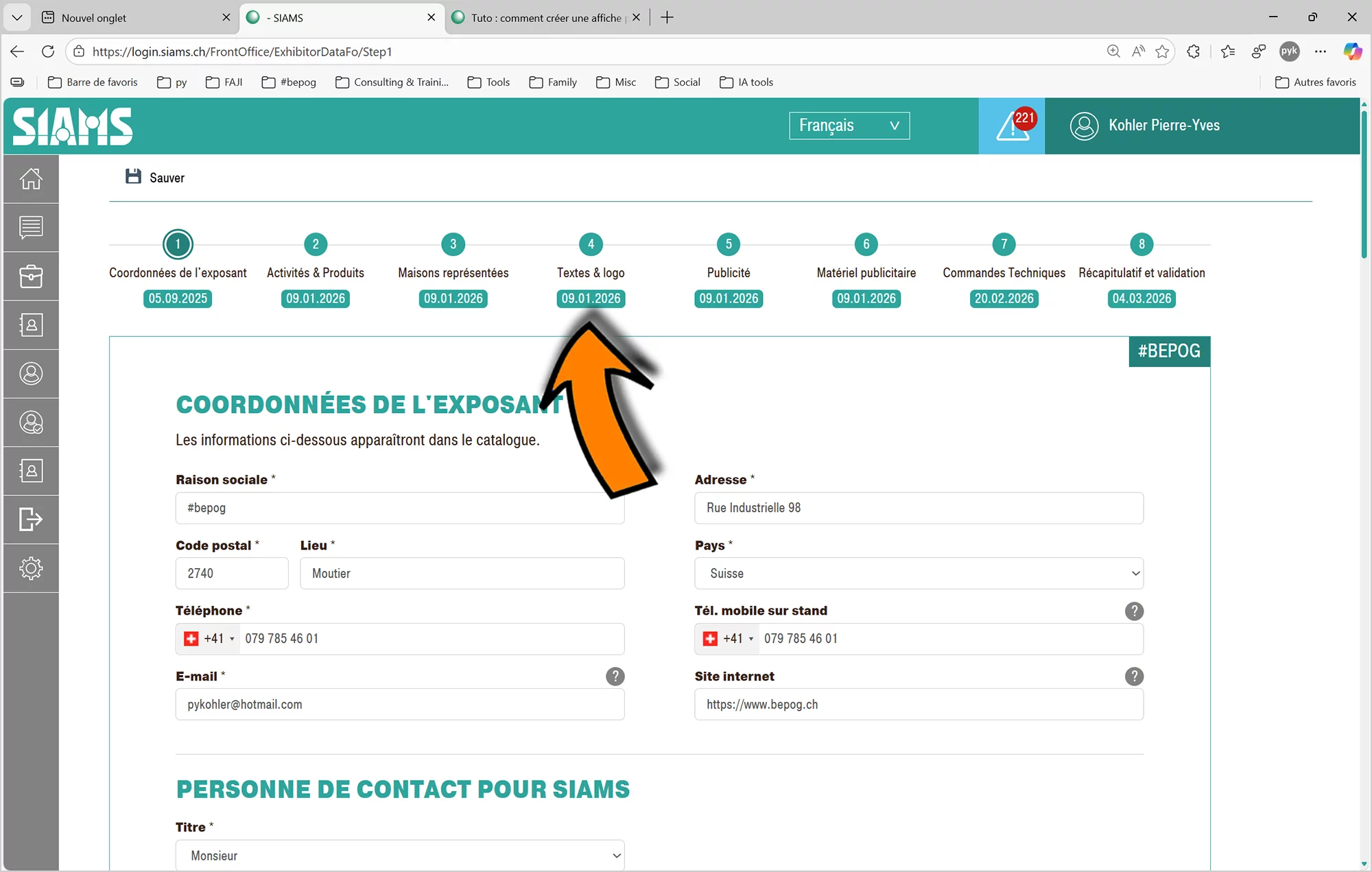Validez et votre logo est automatiquement visible sur votre page exposant (coordonnées et news).