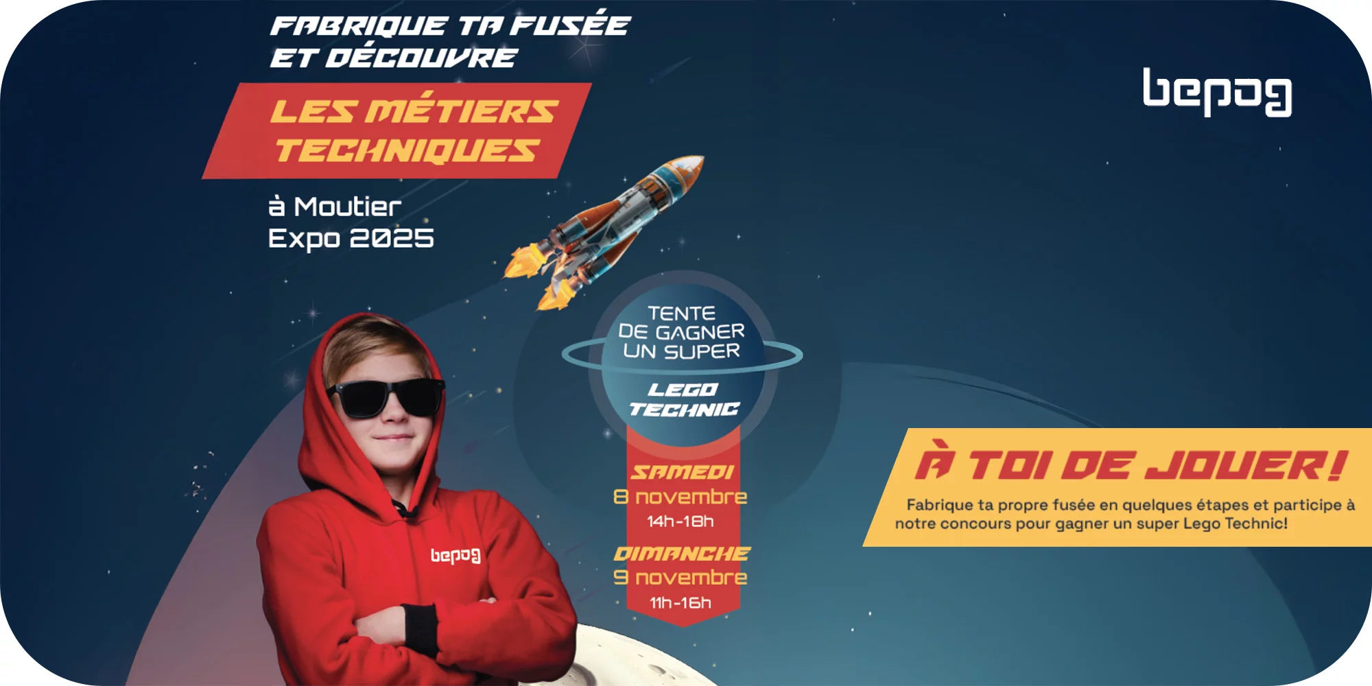 A l'occasion de Moutier Expo, les parents auront l'opportunité de rencontrer des responsables d'entreprises et de formation tandis que les jeunes de 9,10 et 11H pourront découvrir la technique de manière ludique, créer une fusée intergalactique personnalisée et participer à un concours pour gagner un Lego Technic.