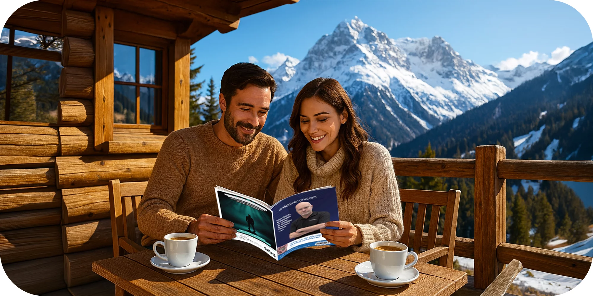 Luca et Mélanie profitent de leurs vacances à la montagne pour découvrir le reportage relatif à la création de GenTech dans la dernière édition du MicroMécanicien.