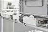 Un verrou à actionnement électrique arrête les récipients et autres conteneurs petites charges (CPC) sur un convoyeur à galets et les débloque à la demande.
